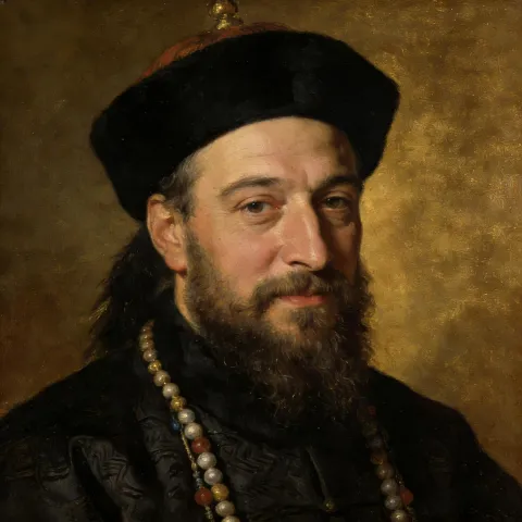 郎世宁(Giuseppe Castiglione,1688年—1766年),天主教耶稣会修士、画家,意大利米兰人。1715年(清康熙五十四年)来中国传教,随即入皇宫任宫廷画家,历经康熙、雍正、乾隆三朝,在中国从事绘画50多年,并参加了圆明园西洋楼的设计工作,为清代宫廷十大画家之一。